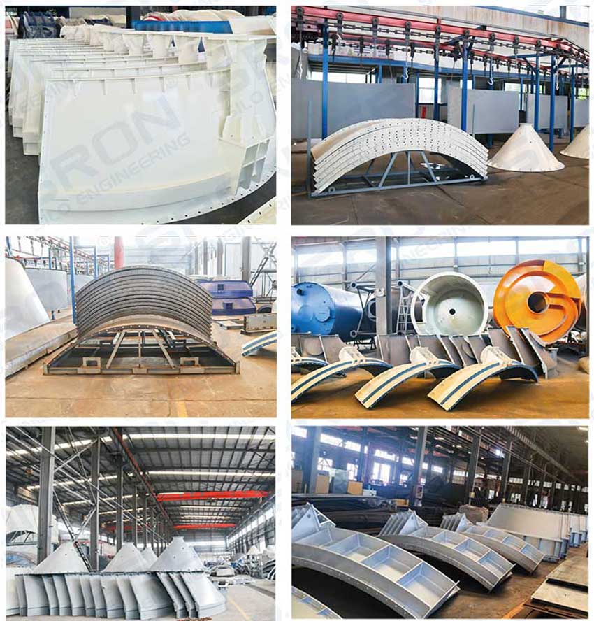 Manufacturing process: plates are cut to size, then press-formed on four sides; stiffeners and flange holes are punched in one process to ensure interchangeability. Some hopper-bottom or leg components are prefabricated and welded in the factory.